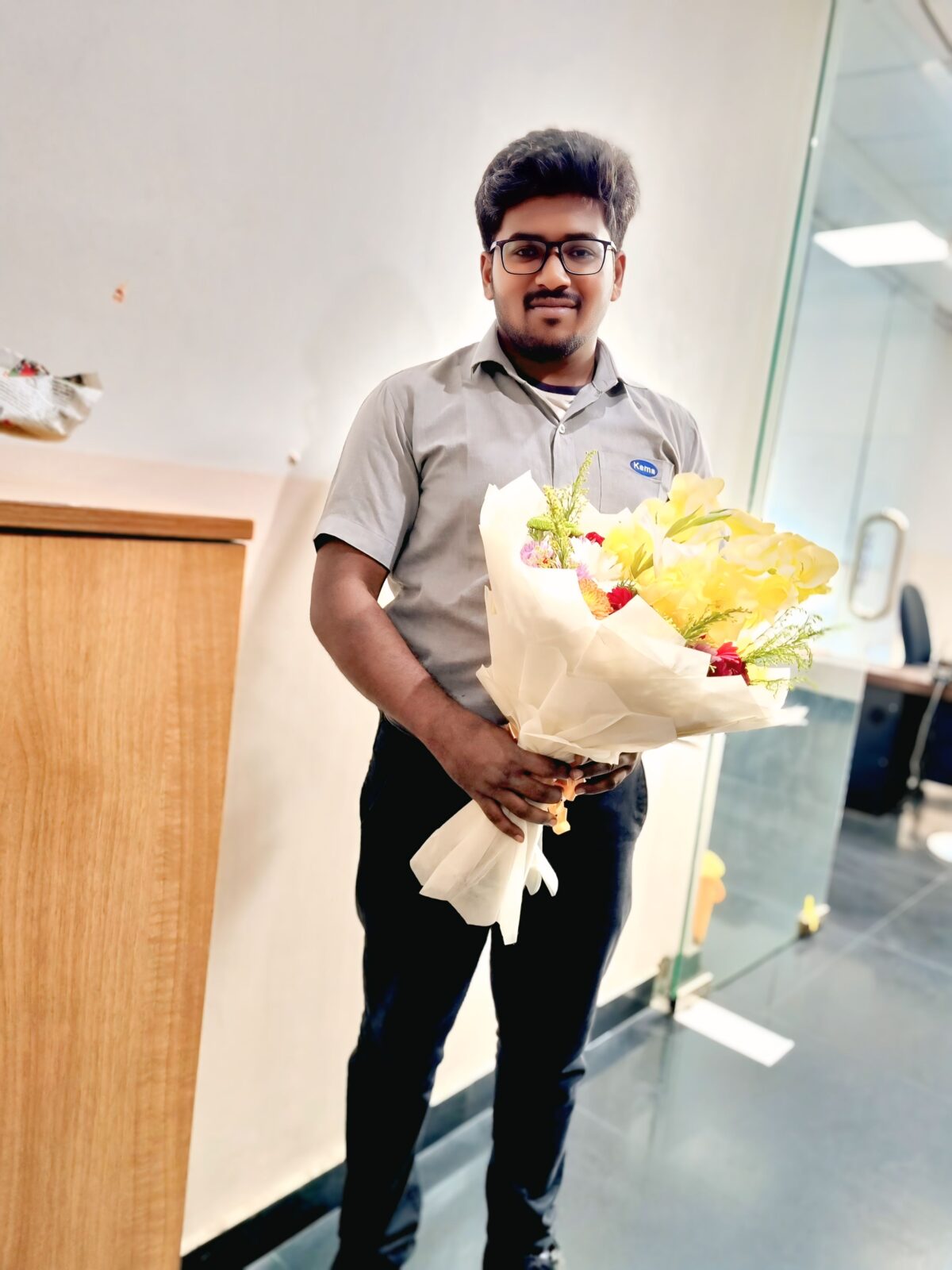 கோவை சூலூரில் உள்ள PROPEL INDUSTRIES PRIVATE LIMITED ல் senior design Engineer ஆக computer ல் வேலை செய்கிறார்