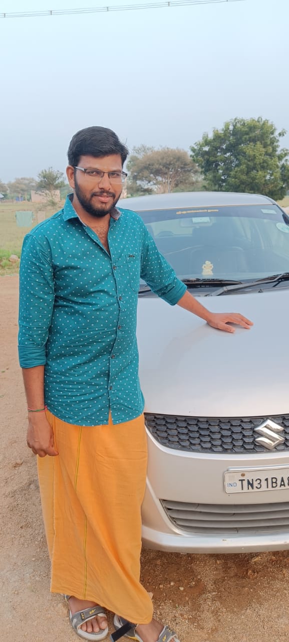 My son Selvakumar is a kind hearted and hardworking person. He works for 5 days at private automobile sector and engage in our business for rest two days. He is a family oriented person who always wish to spend his free time with family.